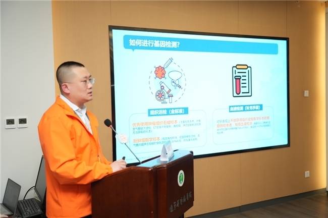 活动现场,辽宁省肿瘤医院李鹏飞教授带来了“EGFR阳性肺癌的‘防’与‘治’:科学与信心的双重守护”主题科普分享 。李教授深入浅出地讲解了基因检测对于精准治疗的重要性,并强调:“医生与患者永远是战友,治疗过程中一旦出现任何不适,一定要及时和自己的主诊医生沟通,共同调整方案。”