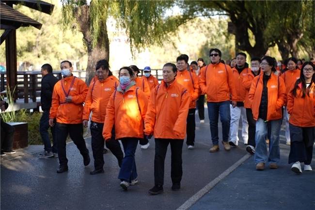 科普与互动环节后,沐浴着午后的阳光,在场的医护人员、患者及家属一同前往万泉公园,开启了“同一天,一起行-美乐时刻,与爱同行”健步走环节。尽管天气微凉,但阳光正好,大家热情高涨。大家迈着轻快的步伐,在运动中交流抗癌心得,分享生活点滴,感受着集体的温暖和生命的力量。