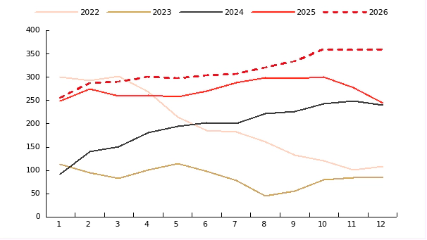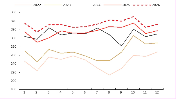 考虑新增产能的投放、夏季检修的扰动,据华泰研究院估算,预计纯碱月度产量维持在332万吨左右的高位,2026年全年纯碱产量增幅在5.4%左右,总产量提升200万吨,从而进一步加深纯碱供应过剩的局面。