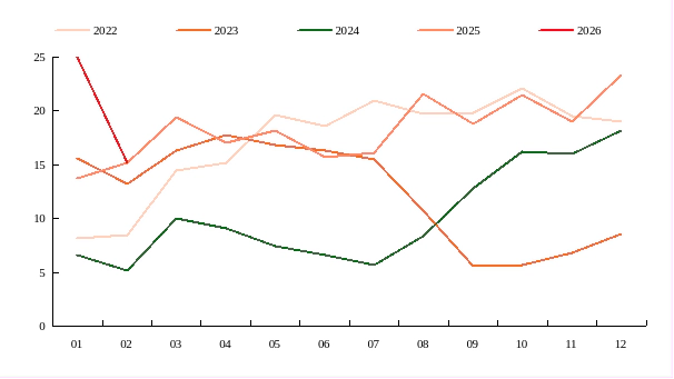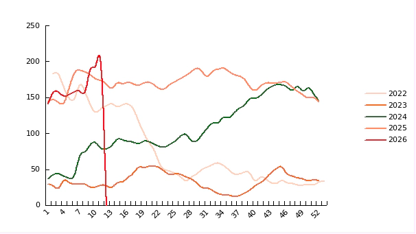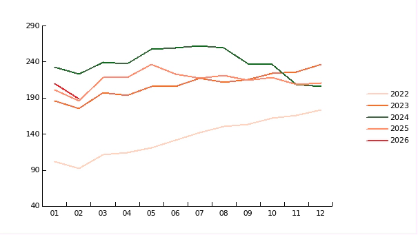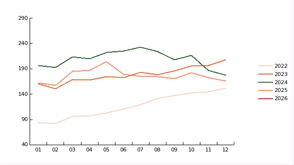 近年来国内纯碱价格低迷,国内纯碱出口持续高增,据海关数据,2025年纯碱出口量达到210万吨,2026年1-2月累计出口量40万吨,同比增加39%。