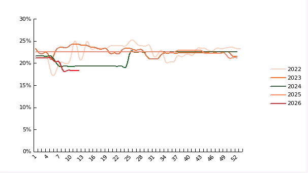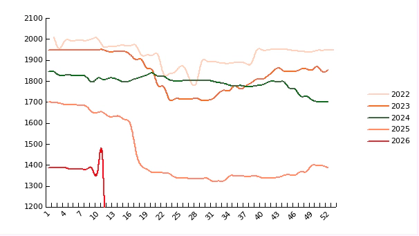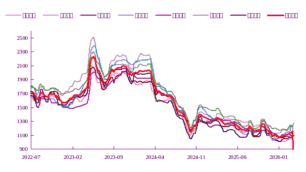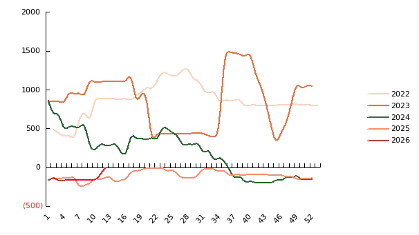 2026年一季度,浮法玻璃产线持续减少,光伏玻璃产线基本持平。截止目前浮法玻璃在产日熔量14.58万吨,净减少4700(吨/天)。光伏玻璃在产日熔量8.9万吨,净增加1830(吨/天)。整体看来,2026年1-3月份浮法和光伏玻璃总日熔量达到23.5万吨,同比下降5%,对应测算的重碱消耗同比减少5%。