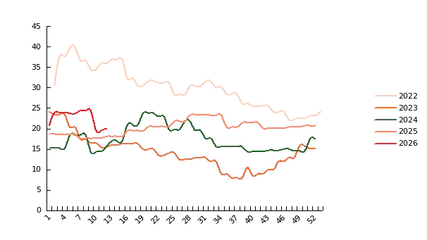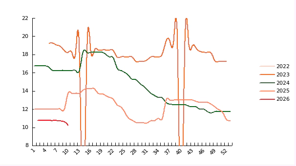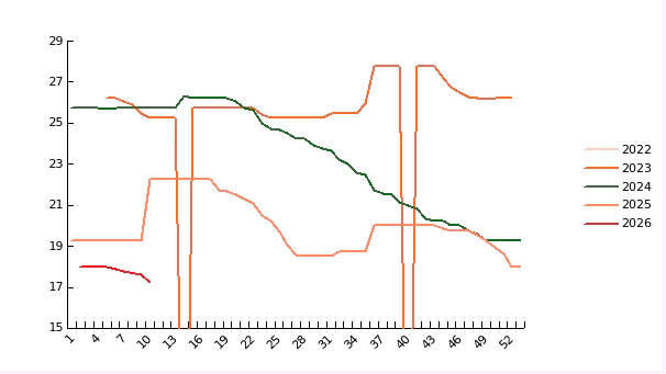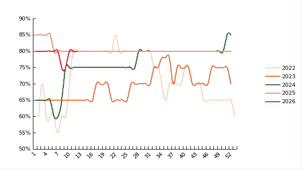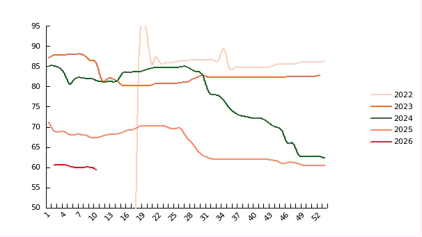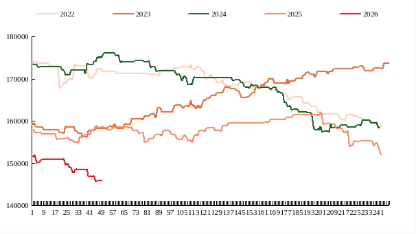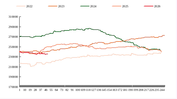 近年来纯碱产能过剩问题愈加明显,纯碱各环节库存进一步增加,其中纯碱生产企业库存处于历史同期高位。2026年纯碱新增产能继续增加,而重碱需求下滑,轻碱需求相对持稳,部分纯碱企业库存长期处于偏高水平。据隆众数据,最新纯碱企业库存增至193万吨,同比处于绝对高位;样本玻璃厂纯碱库存可用天数19.55天,处于中位水平。据卓创数据,纯碱交割库库存28.95万吨,同比处于中位。纯碱三环节库存加总达到276万吨,处于同期绝对高位。