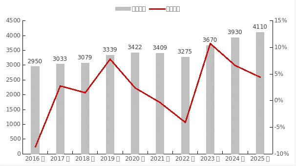 图 8:纯碱产能及同比增速丨单位:万吨、%