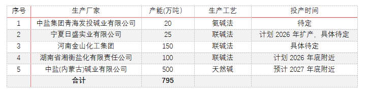 据隆众数据2026年1-2月已新增355万吨产能,最新国内纯碱产能来到4465万吨,即湖北新都新增65万吨联碱产能,河南金山技改扩产10万吨及阿拉善二期280万吨天然碱产能。2026年之后行业仍有新增产能项目,未来两年纯碱行业仍处于投产周期。