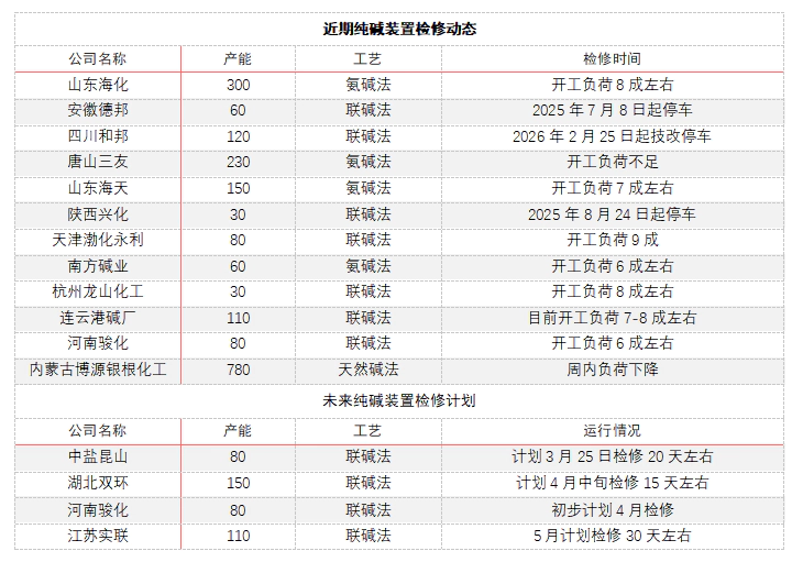 表 2:纯碱近期检修情况及未来纯碱装置检修计划
